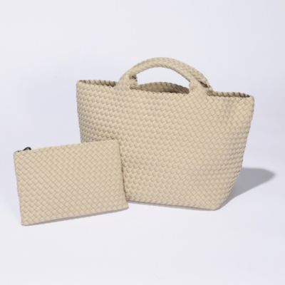 - ネオプレン素材を職人が一点ずつ丁寧に手織りで仕立てた、NAGHEDIのトートバッグ。立体感のある美しい編み地が、シンプルな装いにもさりげない存在感を添えてくれます。雨や汚れもサッと拭き取れる扱いやすさを備えながら、ラフになりすぎず上品に持てるのはこのバッグならでは!定番モデル「St Barths Tote」のミディアムサイズは、軽くて丈夫で収納力も十分。デイリー使いはもちろん、旅行や荷物が増えがちな日にも頼れるサイズ感です。春も引き続き注目のブラウンコーデに自然になじむ、ニュアンスのあるカラー展開も魅力。付属のポーチも小物の整理に重宝します。