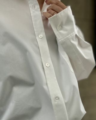 - ラフにはおって女らしさを上げてくれるオーバーシャツ。コンパクトな襟やすその前後差など、そのまま無造作に着てもニュアンスが出しやすい。オールシーズン使いやすいホワイトはマリソルの別注色。