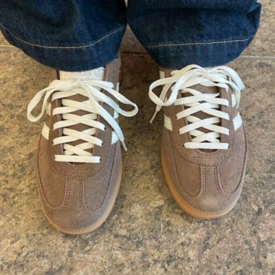 - トレンドのロープロファイル(薄型)を代表する、軽やかなルックスのモデルです。上品なモカブラウンのスエードに、ブランドのアイデンティティといえる3 本ラインをON。ゴールドのさりげないロゴも上品で、大人のカジュアルに格を足したいときにピッタリです。