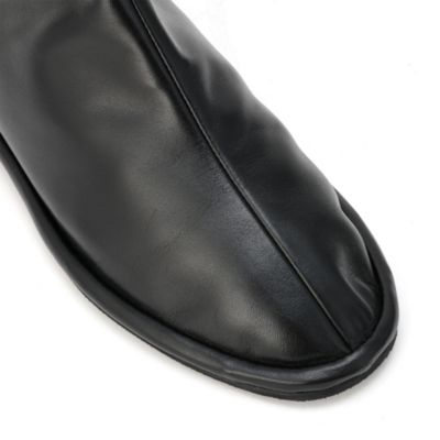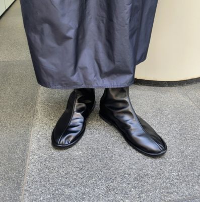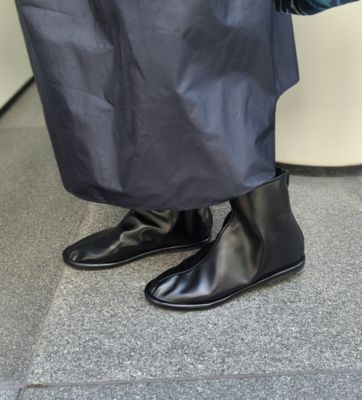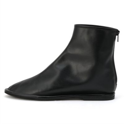 足袋のようなユニークなデザインが目を惹く、薄底のフラットショートブーツ。新鮮なシルエットで、スタイリングのアクセントにもぴったりです。