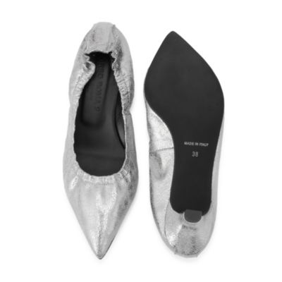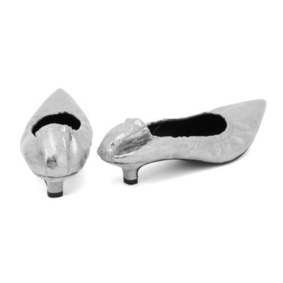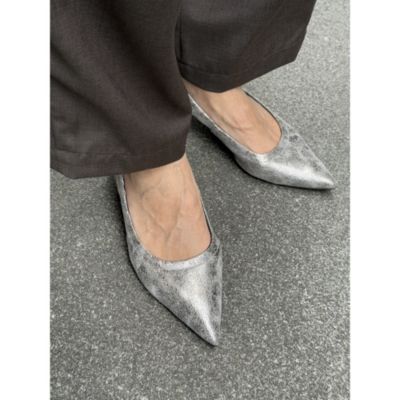 - 今年らしいシャーリングデザインのプチヒールパンプス。Marisolでは人気のシルバーをセレクトしました。クラッシュされたシルバー素材なので、きれいめになりすぎず、カジュアルコーデにもマッチ。ハードすぎないポインテッドトゥも今の気分にぴったりです。かかとシャーリングは足が抜けにくいというメリットも!