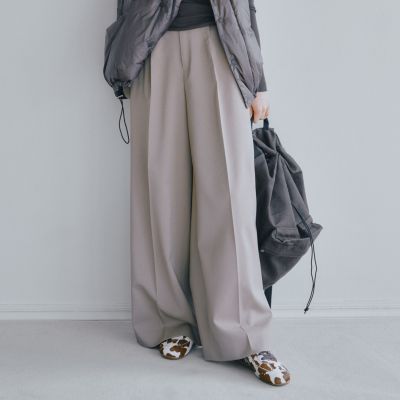 - 素材の表面にニュアンスがありウール見えしつつ、自宅で手洗いできる素材を厳選。適度なハリ感が美しいフォルムを生み出す。ほどよく深めの股上がヒップを包み込み、シャープなセンタープレスで脚長見え効果も!