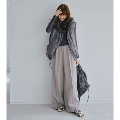 【徳原文子さんより】「トレンドのサスペンダーパンツを大人が取り入れられるよう、パンツそのもののシルエットの美しさに徹底的にこだわっています。適度に落ち感のあるきれいめ素材で、スタイルがよく見えるワイド幅も吟味!」