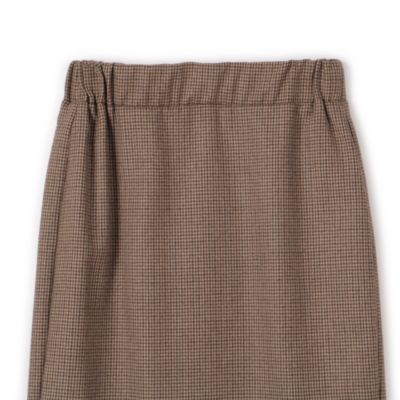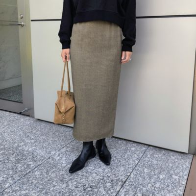 ウエストゴム仕様が履きやすく、ゴムだけどカジュアル見えしないすっきりしたタイトなシルエットが大人できれいめなスカートです。タイトですが後ろスリットがあるので歩きやすいです。170cmで38で着て着丈は長すぎない丈感なので、ショートブーツやロングブーツを合わせてもブーツのデザインも映え、パンプスだと足首すっきり見せて履いていただけます。生地感とさりげないチェック柄がとても素敵です。