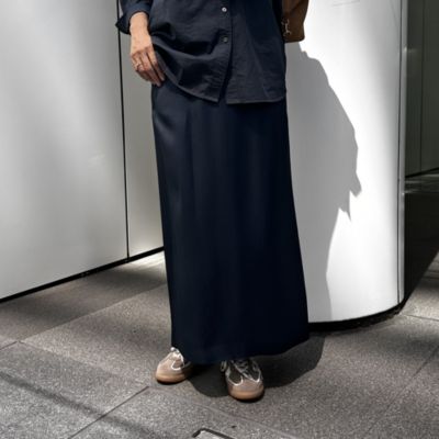 アセテート/レーヨンのサテン素材を使用したストレートロングスカート。