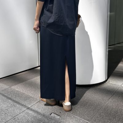 おなかやヒップまわりがジャストサイズだから、きれいなIラインシルエットで着やせ・脚長見えがかないます。後ろスリット入りだから足さばきも良く、ウエストはドローコード仕様でとても着やすいです。着丈はくるぶしが隠れるくらいで、長さがしっかりとあるところがお気に入りです。