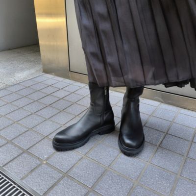 - ストレッチが効いていて履き心地抜群のブーツ。厚底ソールながら、見た目の印象よりも軽く、長時間履いても快適です。脚をすっきりと美しく見せてくれるシルエットと丈感で、スカートスタイルにもパンツスタイルにも合わせやすく、幅広いコーディネートに活躍する一足です。バイヤー.mt