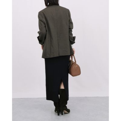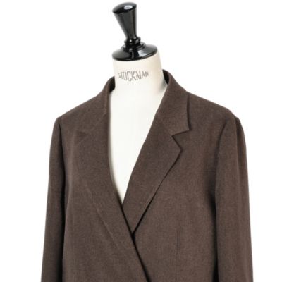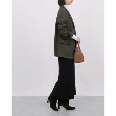 メランジの表情感が魅力的なテーラードジャケット。ウール見えする素材感ですがポリエステルなので、扱いがラクチンなのも嬉しいポイント。ダブルブレストなのでトレンド感もありつつ、きちんと見えるシルエットに拘ってお作りしています。ハリ感とコシがある素材なので、お仕事着としてかっちりと着こなすも良し、デニムに合わせて外すのも良しな、万能ジャケットです。