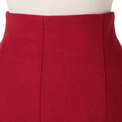 - 【辻 直子さんより】「ハイウエストのIラインスカートは、深めに入ったスリットがポイント。今シーズンらしいロングブーツを合わせて、歩くたびにブーツが見え隠れする。そんなスタイリングが新鮮に映ります。ほかにも、パンプスを合わせたフェミニンなスタイル、ソックスにローファーのようなカジュアルな雰囲気など、“スカート+シューズ”だけで今っぽさと多彩なコーディネートが堪能できるデザインになっています。ハイウエストにトップスをインしたり、アウトにして上からベルトをするなど自在な着こなしと、冬に多くなりがちなダークカラーに映える色も魅力です。」