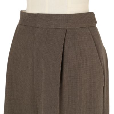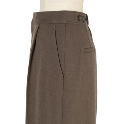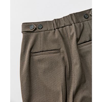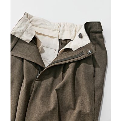 - ブラウンはピンヘッド、グレーはシャークスキンと色によって表地を変え、単色とはひと味違った奥行きのある表情に。対して裏面はどちらも柔らかい微起毛の加工を施し、ソフトで暖かな風合い。広がりすぎないセミワイドシルエットですっきりはけるのも、人気のポイント。