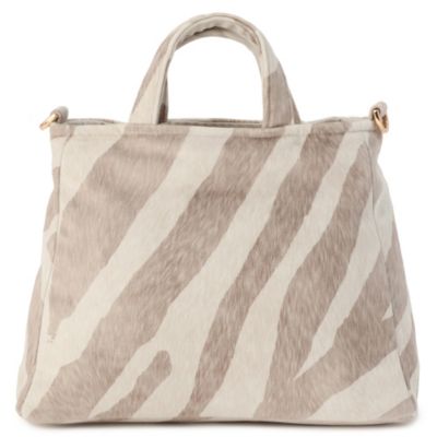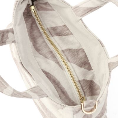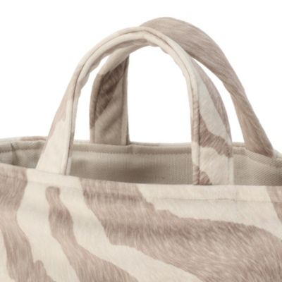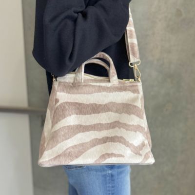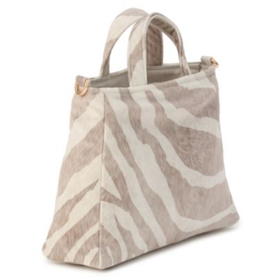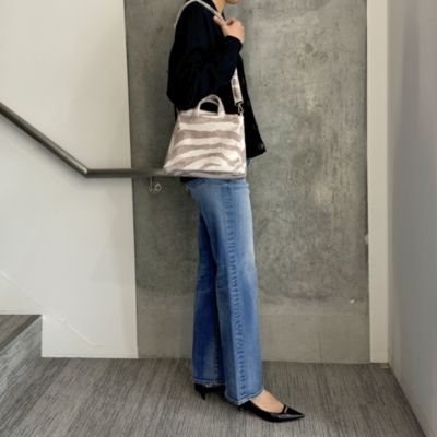 【スタイリスト徳原文子さんより】「昨年の秋冬、柄違いのレオパードバッグを展開していたのですが、それが軽くてスタイリングのポイントにもなるし、活躍してくれたんです。それで今回は春夏用に、より軽やかなこちらのゼブラ柄をセレクトしました。ベージュやブラウン系のコーディネートにぜひ!」