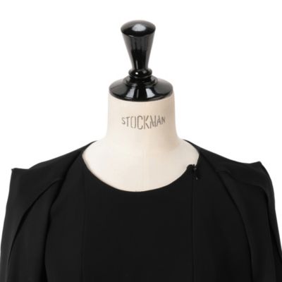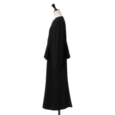- セットアップに見えて、ペプラムジャケットとワンピースが一体化しているので、着崩れにくく、美しいシルエットをキープ。同時に、ウエストにゆとりをもたせたマーメイドシルエットで、快適な着心地も実現。