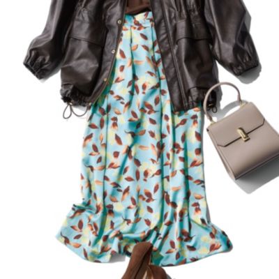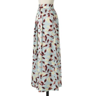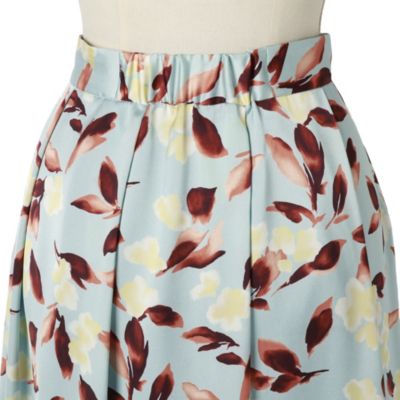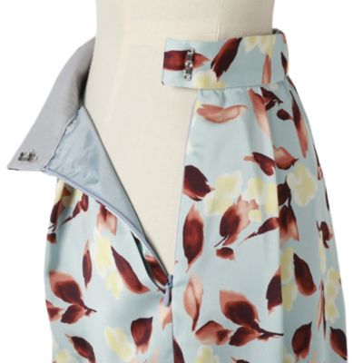 - 華やかな花柄のオリジナルプリントスカート。ほどよい光沢感としなやかな落ち感が魅力のサテン素材に、深めのウエストタックが、軽やかな動きを演出。水色×ブラウンの配色は、合わせる色を選ばず活躍する。オリジナルの花柄プリントは、ベースカラーが水色だから一枚で存在感がありながらも上品なイメージ。歩くたびに揺れる軽やかな質感が、春らしさを振りまいて。