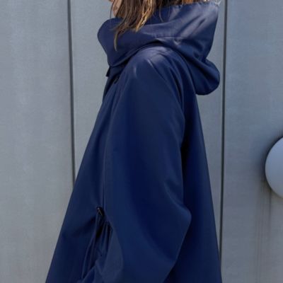 - リサイクルポリエステルとオーガニックコットンを使ったサスティナブルな素材で、撥水加工されているので梅雨時期にも活躍。フードは取りはずし可能で、ウエストのドローストリングスでシルエット調節もできる。