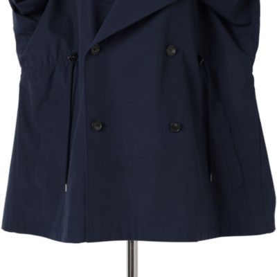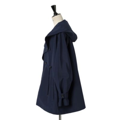 高めな衿(フード)は取り外し可能で、ウエストのドローストリング、袖口のアジャストベルトでシルエットの変化も楽しめます。VACHEMENTの定番ショートトレンチコートです。