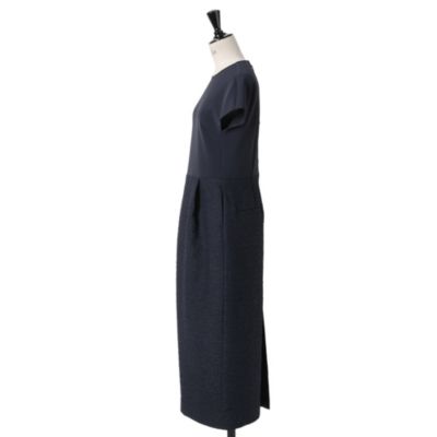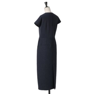 - スカート部分はジャケットと同素材のジャカード、上半身は伸縮性のあるダンボールニット素材で、着心地と着映えを両立。背中のファスナーについたグログランリボンは上品なだけでなく、着脱もしやすい仕様。上×下のメリハリに加え、高めのウエスト位置と腰まわりのゆとりで、視覚的に誰もがすらりと脚長に見えるから、ぺたんこ靴も怖くない!