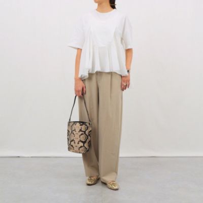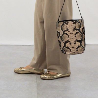 - しなやかなレザーが足を柔らかく包み込み、素足でも快適な履き心地。キュートな印象のバレエシューズにフロントのメッシュ編みデザインがアクセントを添える。ベージュの靴を合わせる感覚で取り入れるのが◎。