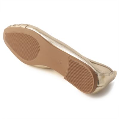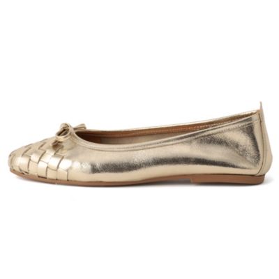 - ゴールドがコーディネートの差し色となり、スタイルを華やかに見せてくれるフラットシューズです。柔らかな素材で足馴染みがよく、快適な履き心地も魅力。フロント部分のメッシュ編みのデザインが、アクセントを添えています。バイヤー.mt