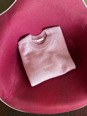 素材はオーストラリア原料の上質なラムズウール。国内に数台だけ残る古い機械で3ゲージにこだわって編み、柔らかく軽い風合いをかなえている。