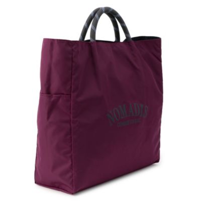 今春からロープハンドルが太くなり、より肩掛けしやすく、重たい荷物が持ち運びしやすくなった、アイコンモデルの『NOMADIS SAC』。別注カラーは、正方形にごく近いナイロンのボディに深みのあるボルドーカラー、ハンドルにネイビーという、カジュアルさの中にほんのりと女性らしさが香る組み合わせ。あえてボルドーに馴染ませたフロントロゴもポイントです。日常からレジャー、旅行までいろんな予定に対応し、いいアクセントになってくれる一品。