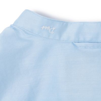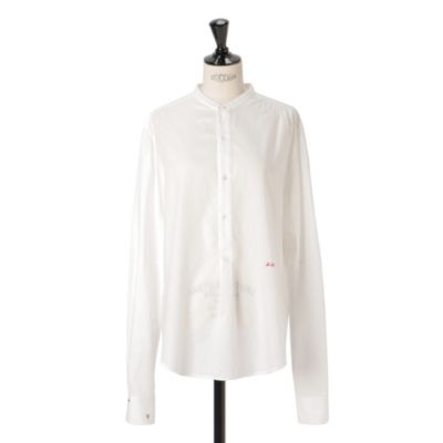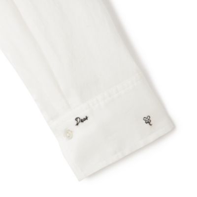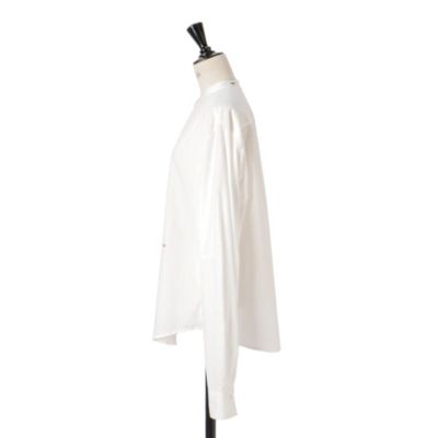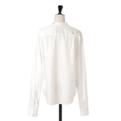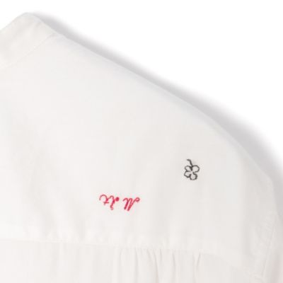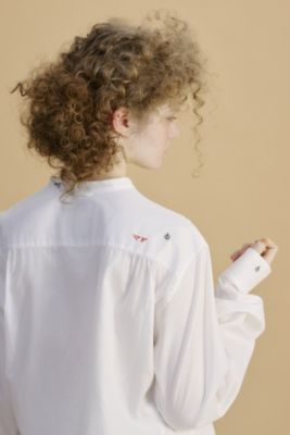 すっきりとしたスタンドカラー、つかず離れずのシルエット、少し長めの丈と袖。シンプルでいながら袖を通しただけでこなれたムードの漂うシャツには、デザイナーこだわりの小さな刺しゅうがあちこちに。ふとした時に目に入り、思わず笑顔になれるしかけつき。(エディターoku)