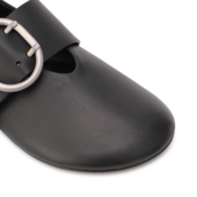 ラウンドトゥとリングバックルが目を惹く、レトロムードのバレリーナ。甘さと辛さのバランスも良く、ワイドストラップが足首をしっかりホールド。滑らかタッチのラムレザー100%で足入れもしやすく、履くたびに足に馴染んでくれます。