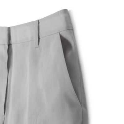 前後のセンタープレスやシングルピザムですっきり仕上げた、ストレートパンツ。レイヤードにも馴染みやすいハイウエストがIラインも強化。さりげない裏地の透け感も相まって、モダンクラシカルな雰囲気が完成します。
