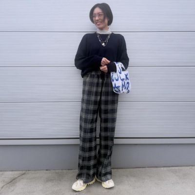 幅が広く長い袖と、体の線を拾わない形が特徴のラガーワンピース。インのハイネックニットを衿元と袖口からのぞかせ、足元にはワンピと色を合わせたベージュのハイテクスニーカーを。キャップやリュック、ソックスなどをブラウンで統一すれば、メリハリ感も言うことなし!「着丈が長くゆったりしたワンピなので、足元に重心を置くことが必須。ソックスは肉厚なものをくしゅっとたゆませて」