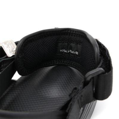 ベルクロ仕様で着脱もしやすい、「SUICOKE」とのコラボサンダル。熱で溶かした材料を金型に流し込み成型する「インジェクション成型」でサボのような丸みが肝!「TOGA」のシグネチャーともいえる、ウエスタン調のバックルやコンチョも足元に今必要な重厚感を添えてくれそう。