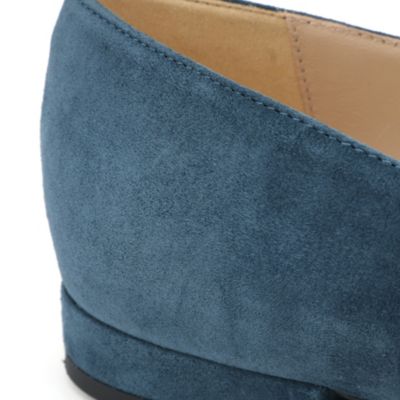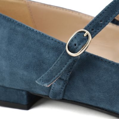 ブルーグリーンの発色が目を引くメリージェーンをセレクト。深い色合いが上品で、秋コーデのポイントに。甲のカッティングもVカットになっており、足元をきれいに見せてくれます。甲浅ながら、ストラップでホールド力もあり、歩きやすさも抜群。晩夏は素足で、秋冬はソックスやタイツ合わせが楽しめる1足です。