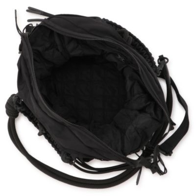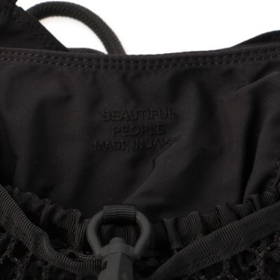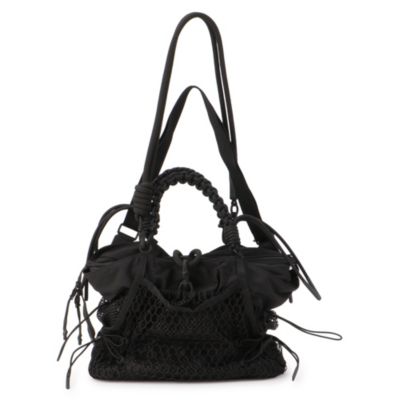 ハンドクラフトで編み込んだハンドルや、ノットディテールが特徴的な2WAYショルダー。取り外し可能なストラップ付きで、重なるメッシュ使いがスポーティーな印象も。内側にはジップポケットと仕切りポケットを配し、デイリーからアクティブシーンまで活躍します。