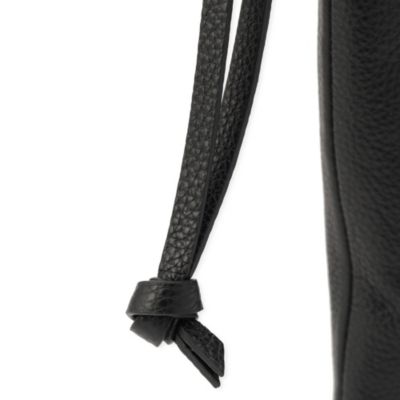 必需品のスマートフォンは、クロスボディタイプのホルダーで身軽&便利に。マルニのサコッシュタイプのホルダーは、上質なレザーに手刺しゅうのロゴがアクセント。開口部はドローコードでキュッと閉めることもできる。(エディターoku)