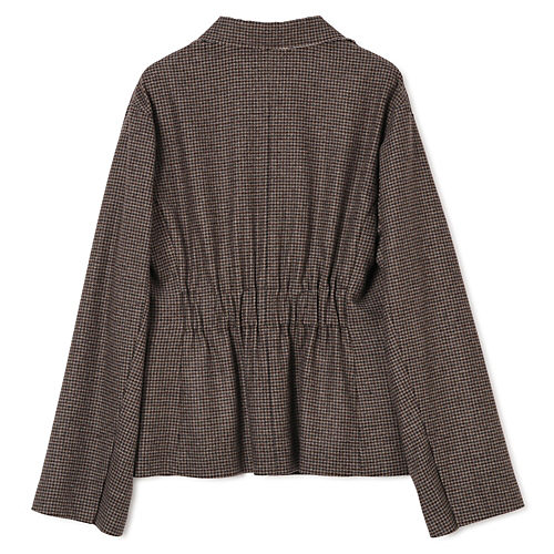 上質のウール生地で仕立てた、クラシカルな雰囲気のテーラードジャケット。細めのラペルと繊細な千鳥格子にフェミニン感が漂い、オフィスからオケージョンまでの幅広いシーンに投入できます。たっぷりギャザーでシェイプした、美シルエットなバックスタイルにも注目です。