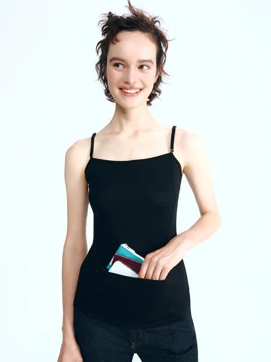 ひとりっPが一から製作したポケットつきのオリジナルキャミソールが完成。考案のきっかけは、リオのカーニバルで踊る際、貴重品の管理に困ったこと。