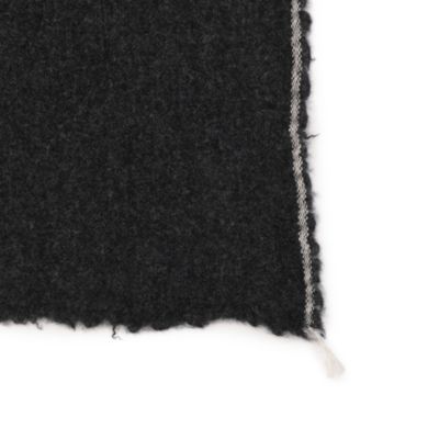 カシミヤ×ウール素材をふんわりと織り上げた大判ストール。シックなチャコールグレーに、縁の白いラインがアクセントになっています。首にぐるぐる巻いたり、肩に羽織ったり。シーンを問わず活躍する名品。(エディターoku)