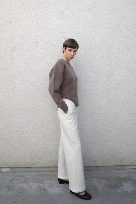 無駄のないすっきりとしたデザインで、様々なスタイリングに合わせやすい一本です。ウエスト位置を高く設定することで、スタイルアップ効果があります。腰にはベルトループを施し、お手持ちのベルトを付けたスタイリングも可能です。