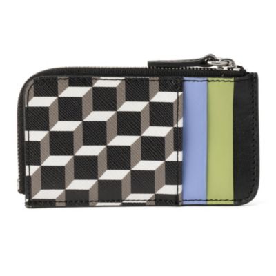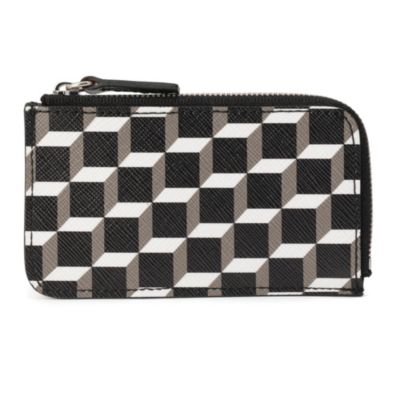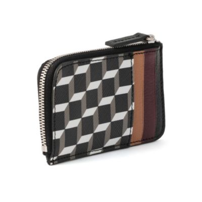 ブランドのシグネチャーである キューブ・パースペクティブ柄コーティングキャンバス とレザーで仕立てられ、外側には複数のカードスロットを備え、素早く機能的なアクセスを可能にしています。