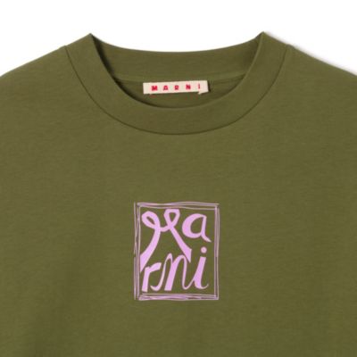 肩まわりのゆったりとしたカフス袖がポイントのクルーネックTシャツ。リボンのような「MARNI」ロゴが目を惹き、小粋な愛らしさをプラス。コットンジャージー素材のしなやかな肌あたりとアースカラーで、大人バランスも整う一枚です。