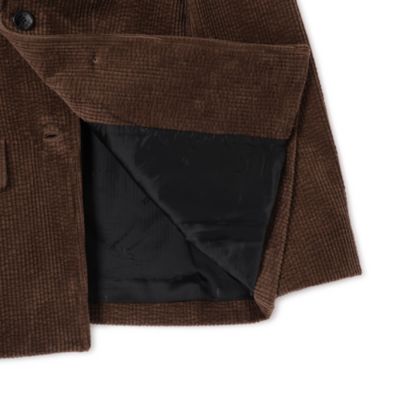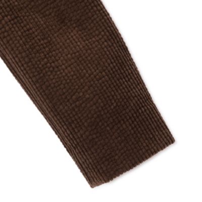 ブラウンの太畝コーデュロイがヴィンテージのようなムードを醸し出すジャケット。ショルダーはわざと大きく設計されたビッグシルエット、背中にも大きなタックがひとつ入っており、アウター代わりにも重宝。(エディターoku)