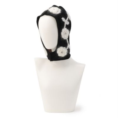 フラワーのアップリケを散りばめた、「GANNI」らしいキュートなバラクラバ。温かみのあるウール×モヘヤのふわっとした起毛感に癒され、気分もハッピーに。すっぽりと被るタイプなので、安定感も抜群です。