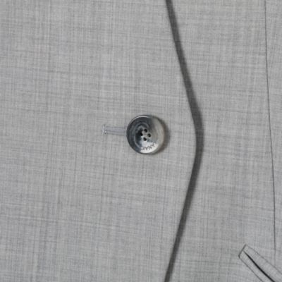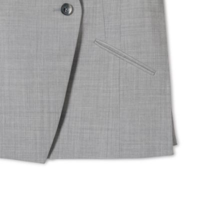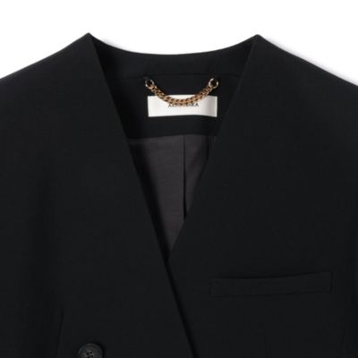 大胆に切り込んだ脇スリットが印象度を高める、カラーレスジャケット。フロントの重なりやボタン配置がエレガンスとモードの絶妙なさじ加減。ウエストシェイプを効かせたクラシカルなデザインで、ボトムスを選ばず活躍します。