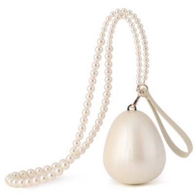 ころんとした「卵」の正体は、実はバッグ。金具を開けるとリップや小さなポーチなどが収められる小ぶりサイズに、ドラマティックなパールストラップがあしらわれた主役級の新作。(エディターoku)
