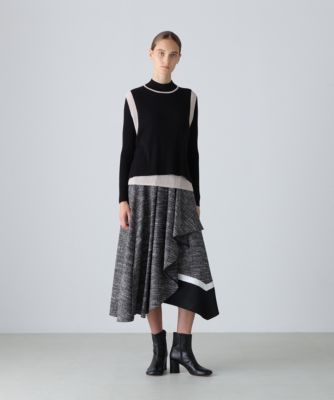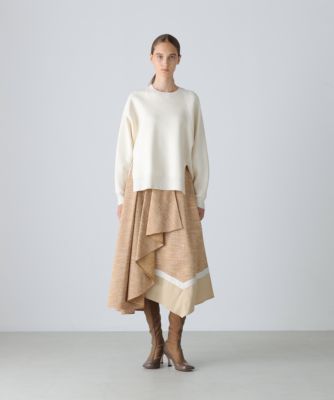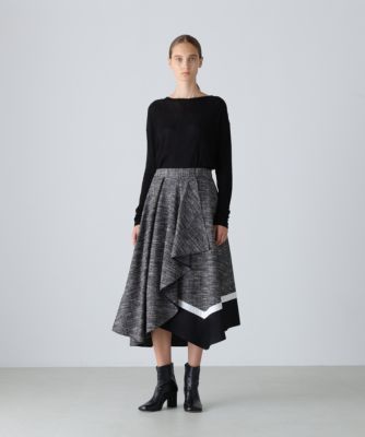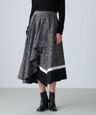 白いスラブ糸が入ったツイード素材のアシンメトリースカート。