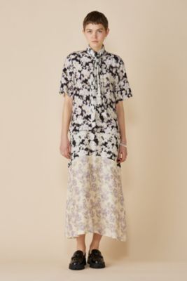 Printed Stretch Cotton A−line Long Dress