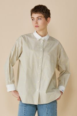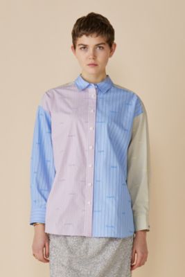 レター刺繍ミックスパターンシャツブラウス
