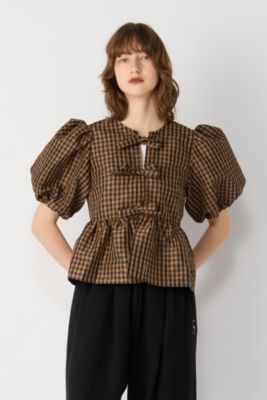 Crinkled Taffeta Check Peplum Blouse