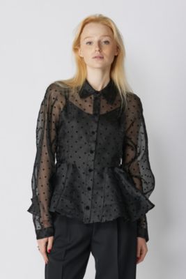Flocked Organza Peplum Shirt