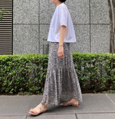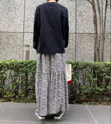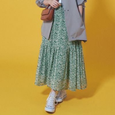 - ヴィンテージライクな小花柄が目を引く、愛らしいプリントスカート。高い位置に切り替えを施したティアードデザインのおかげで、ひざ下がすらっと見え、スニーカーやフラットなサンダルでもバランスよく決まります。ウエストは全周ゴムで快適なのはもちろん、靴に合わせて位置を調整しやすいのも便利。