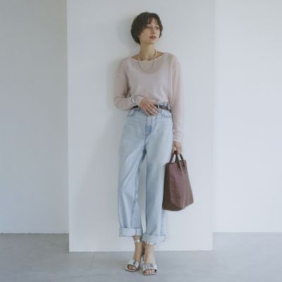 リラックス感のあるボートネック風のロンTと、開きすぎず詰まり過ぎない襟ぐりのタンクトップ。何度も修正を重ねた首まわりのカッティングは、一枚でも重ねたときでも綺麗に見えるように。ロンTの裾はラウンド型のカットオフデザインで、アウトで着ても楽しめる。長めの袖は袖口をくしゅっとさせてこなれ感を演出して。