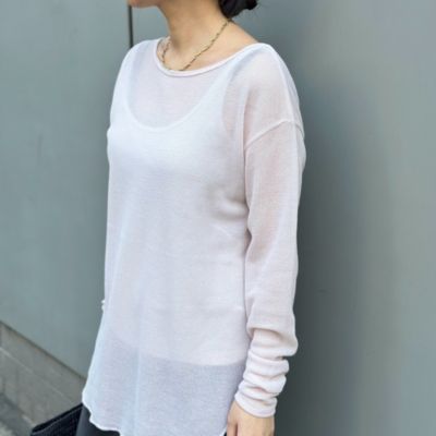 透け感×ワッフル編みで大人のこなれ感を楽しめるロンTを作りました。ドロップショルダーでリラックス感のあるサイジングと、新鮮な生地が一枚で映えます。また、インナーに悩むことなくさっと着られるように、タンクトップ付きに。シャツやジャケット、様々なトップスのインナーとしても活躍間違いなしです。ロンTとインナーの絶妙な配色にもこだわりました。(デザイナ―M)